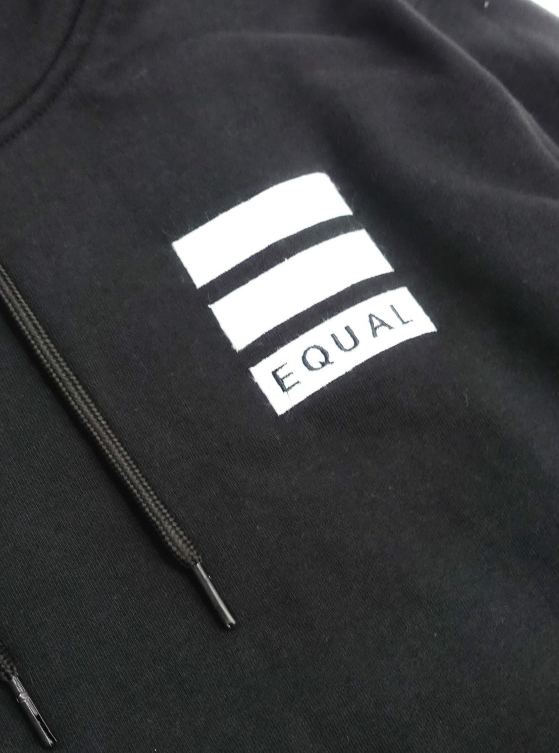 Featuring Equal Legacy Collection Hoodie in black. Embroidered Equal Logo on front left chest and Equal Logo printed on the back. Made from 80% cotton 20% polyester with a heavier feel.