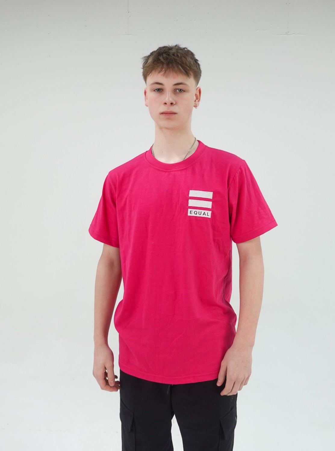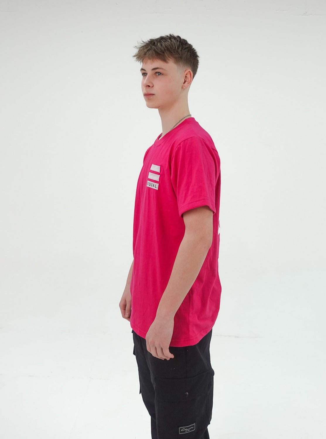 Featuring Equal Legacy Collection T Shirt in Pink. Embroidered Equal Logo on front left chest and Equal Logo printed on the back. Made from 80% cotton 20% polyester with a traditional fit.
